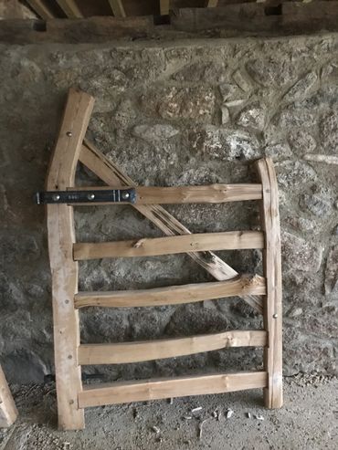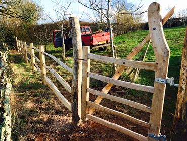 Magnus uses hand tools and traditional methods to produce handmade gates and fencing sweet chestnut and oak, both of which are loaded with natural preservatives.