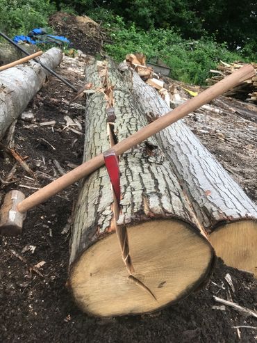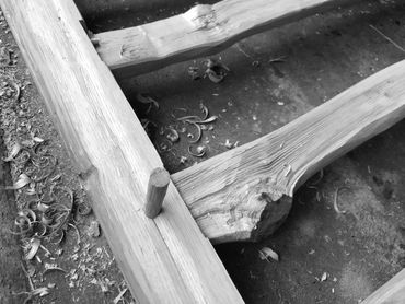 Timber is obtained from roundwood by cleaving with the grain and shaping wood using axe and drawknife. This closes and seals the grain, adding to longevity.