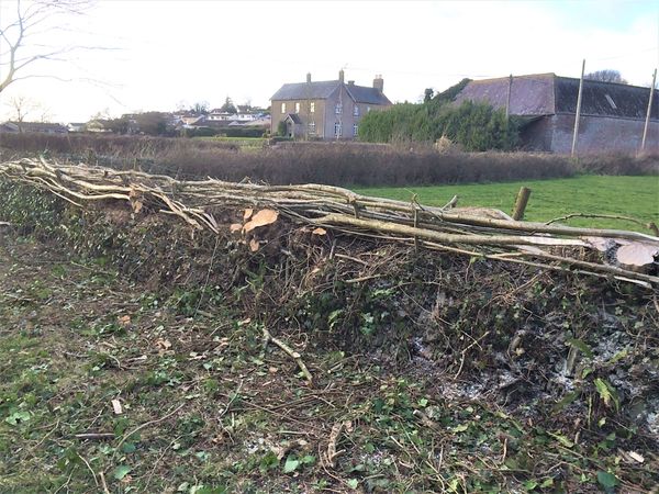 It is common practice to control hedges with mechanical flails. This prevents annual flowering and fruiting of tree species, depriving wildlife. Allowing a hedge to grow for 10-15 years then laying provides years of nectar and food for wildlife and a harvest of timber for man.